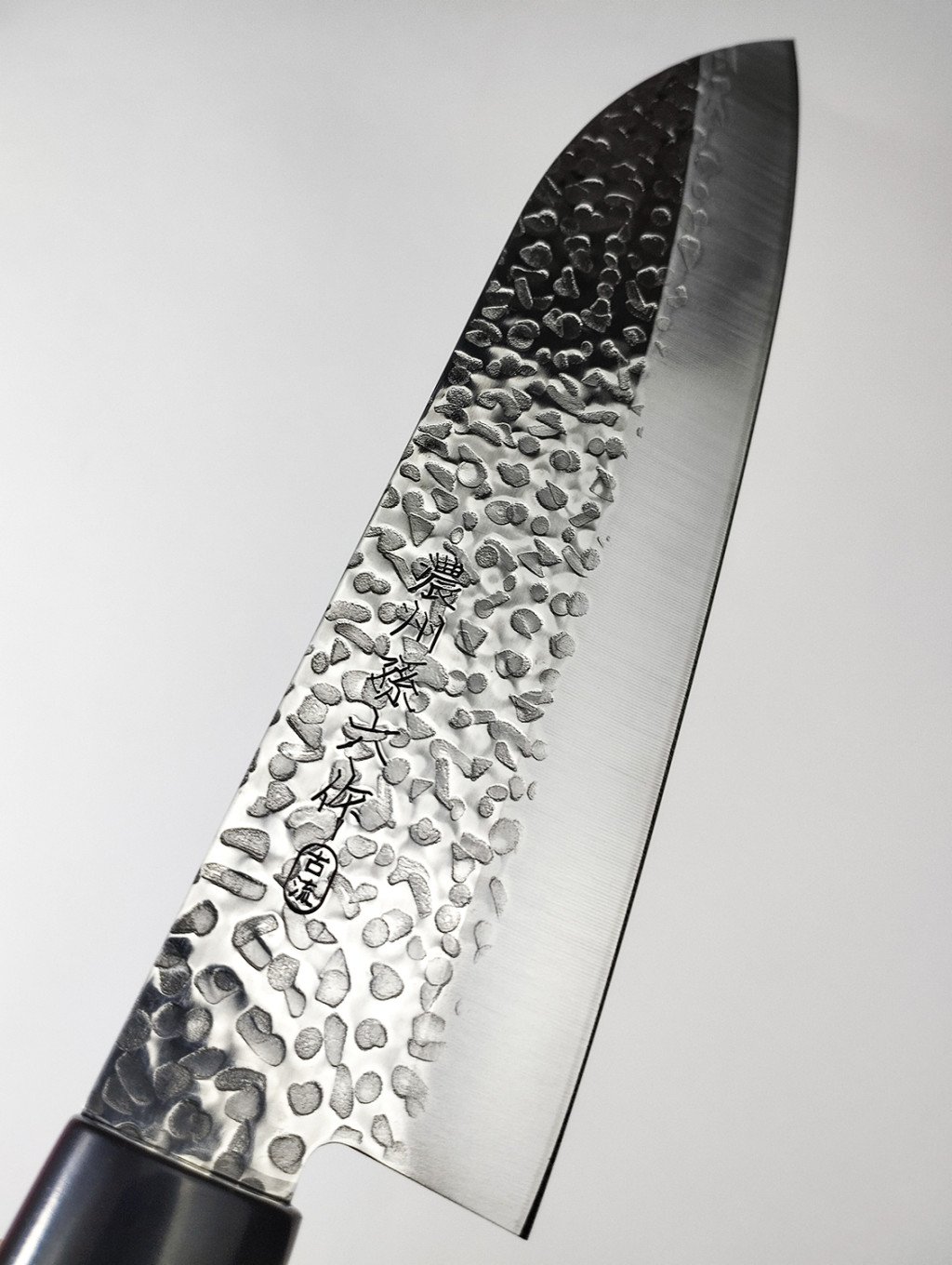 A kés legkiemelkedőbb jellegzetessége a Tsuchime (锤目) kovácsolási technika, amely a penge felső részén kalapált, apró mélyedéseket hoz létre. Ez a kalapált felület nem csak esztétikus, hanem rendkívül funkcionális is, mivel csökkenti a súrlódást a penge és az alapanyag között. Ennek köszönhetően a szeletelt ételek nem tapadnak a pengéhez, így a vágás sokkal simább és precízebb. A "santoku" (三徳) szó jelentése "három erény", ami a kés három fő felhasználási területére utal:
