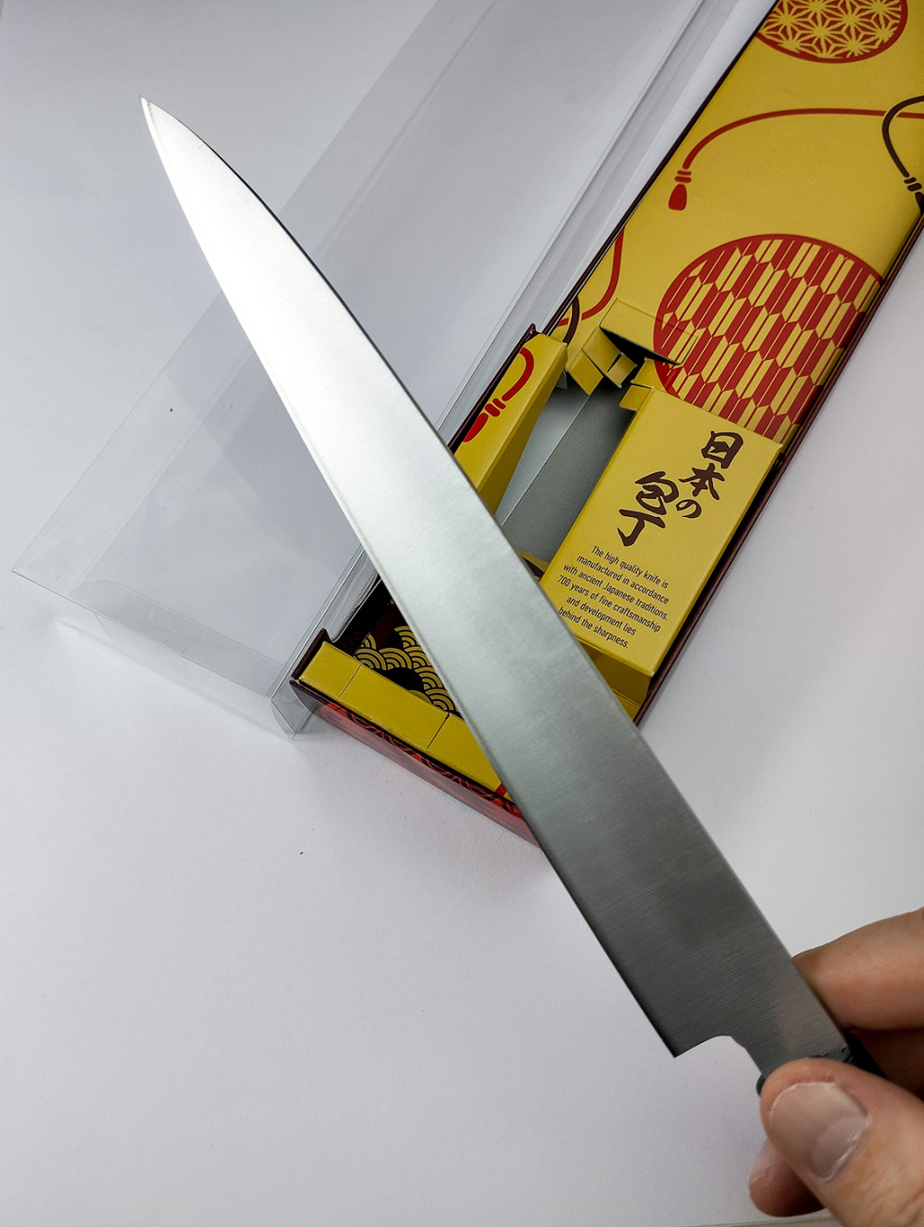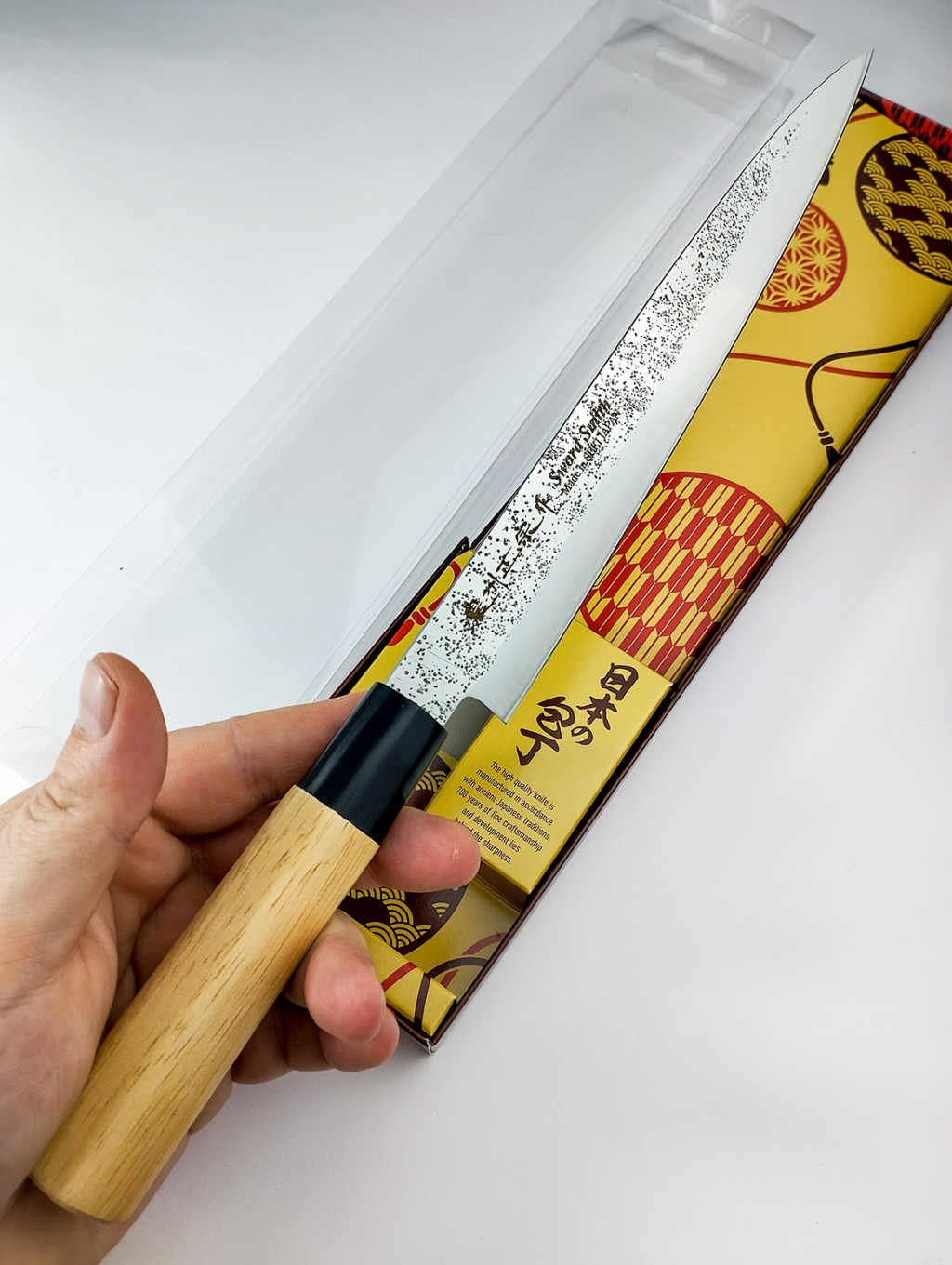 - Speziell zum dünnen Schneiden von Fischfilet (Sashimi)
