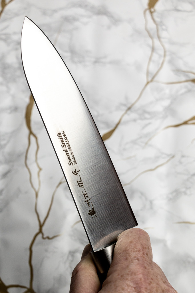 Das Satake Sword Smith Santoku Japanische Küchenmesser ist ein wahrer Alleskönner in der Küche, die perfekte Wahl zum Hacken von Gemüse sowie zum Schneiden von Fleisch und sogar Fisch. Die charakteristische, zurückgebogene Schneide erleichtert das Hacken mit einer Wiegebewegung, während die breite Klinge eine praktische Hilfe zum bequemen Aufnehmen und Transportieren der geschnittenen Zutaten bietet. Der komfortable, erhöhte Griff sorgt dafür, dass Ihre Finger niemals das Schneidebrett oder die Lebensmittel berühren, sodass Sie beim Kochen maximale Sicherheit und Selbstvertrauen genießen.