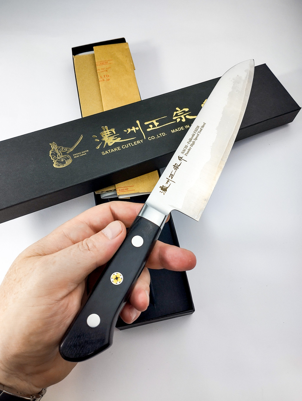 Satake FAX-38 Premium Pulvermetallurgischer Stahl Santoku Messer - 18 cm - Der vielseitige Meister der Küche für herausragende Schnitthaltigkeit
