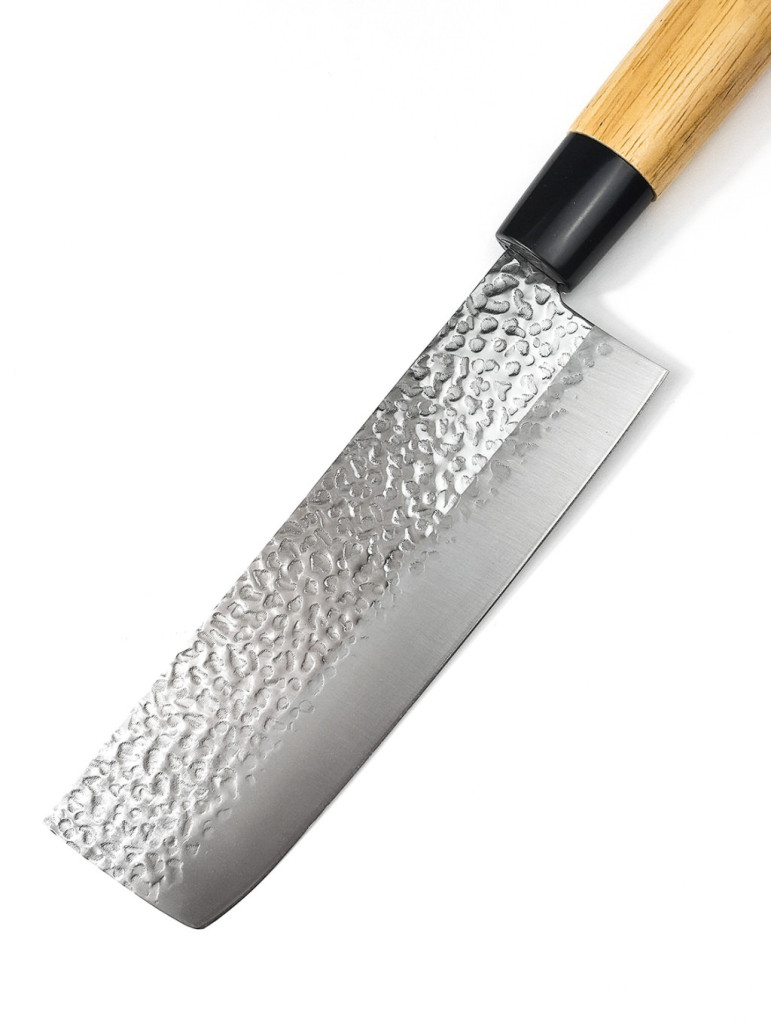 The Nakiri (17 cm): It is specifically specialized in precise cutting and chopping of vegetables, thanks to its straight edge.