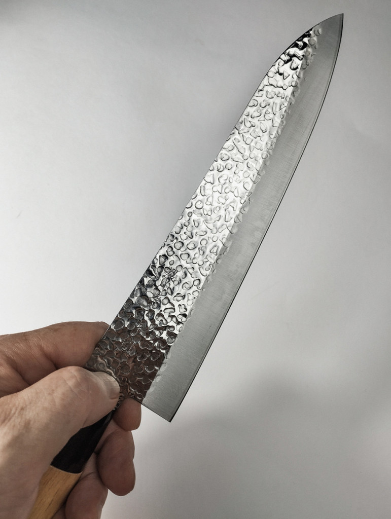 The Gyuto (21 cm): It is ideal as a versatile chef's knife for cutting, slicing, and chopping large meats and vegetables.