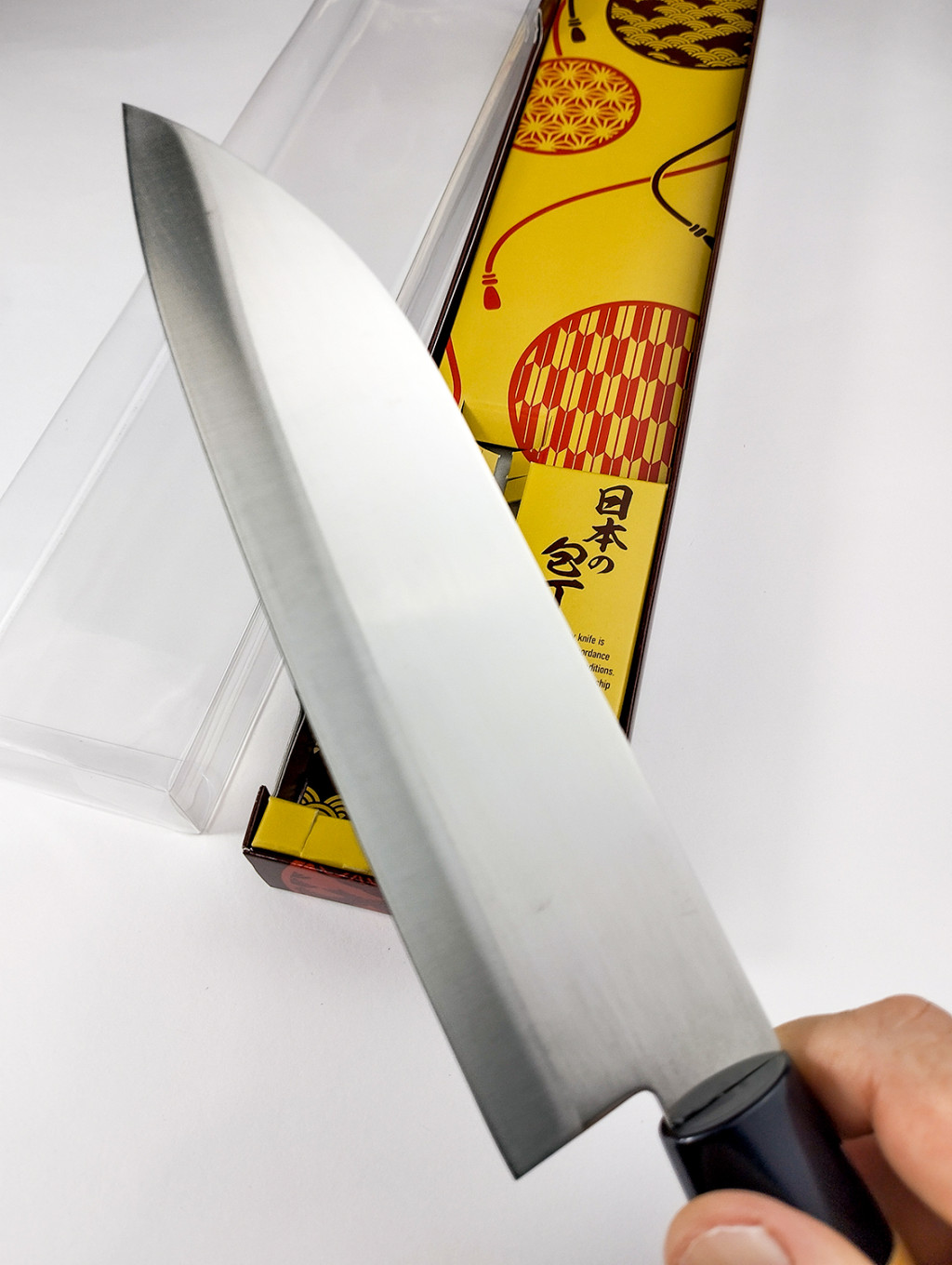 Cuțitul de bucătărie japonez Satake Megumi Santoku este un adevărat maestru universal în bucătărie, o alegere perfectă pentru tocarea legumelor, felierea cărnii și chiar a peștelui. Tăișul caracteristic curbat înapoi facilitează tocarea prin mișcări de balansare, în timp ce lama lată oferă un ajutor practic pentru colectarea și transferul comod al ingredientelor tăiate. Mânerul confortabil și înălțat asigură că degetele tale nu ating niciodată tocătorul sau alimentele, astfel încât îl poți folosi cu maximă siguranță și încredere în timpul gătitului.