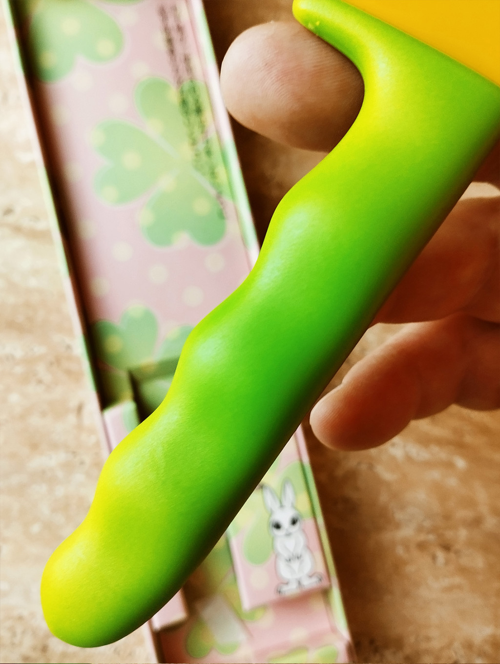 • Handle: pea pod-shaped plastic for comfort and cuteness, in original pea-green color