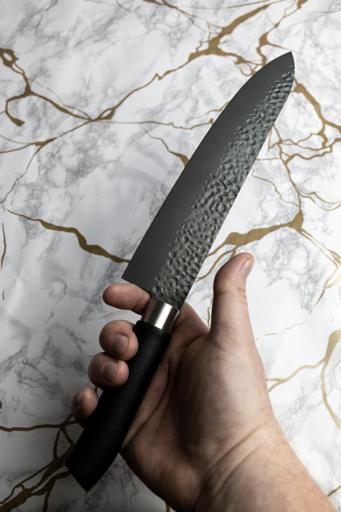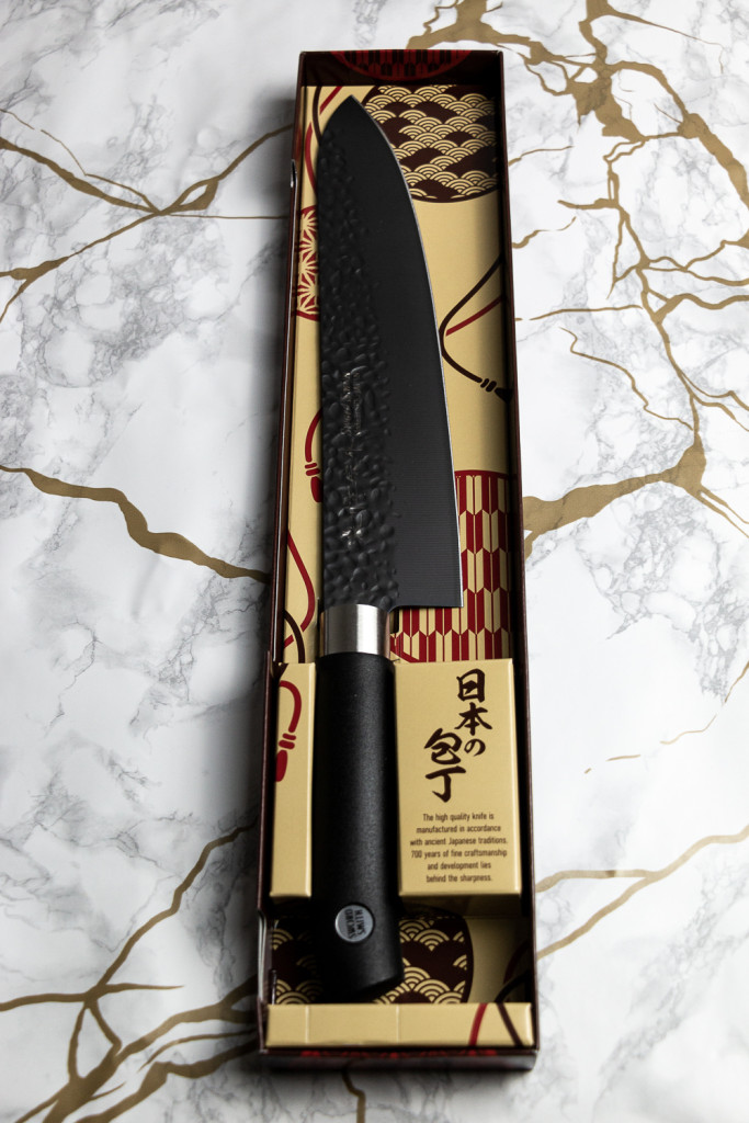 The blade's special titanium coating offers outstanding properties: it is extremely hard and wear-resistant, highly resistant to rust and corrosion, and prevents food from sticking, making both cutting and cleaning easier. The modern black titanium coating gives this excellent Satake Sword Smith knife a stylish appearance. This high-quality chef's knife, also known as a gyuto, is an indispensable tool for every amateur and professional chef, the true soul of the kitchen.