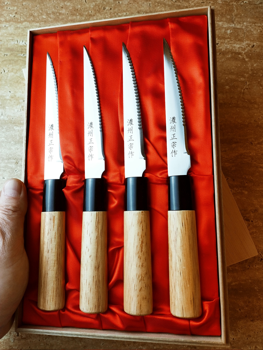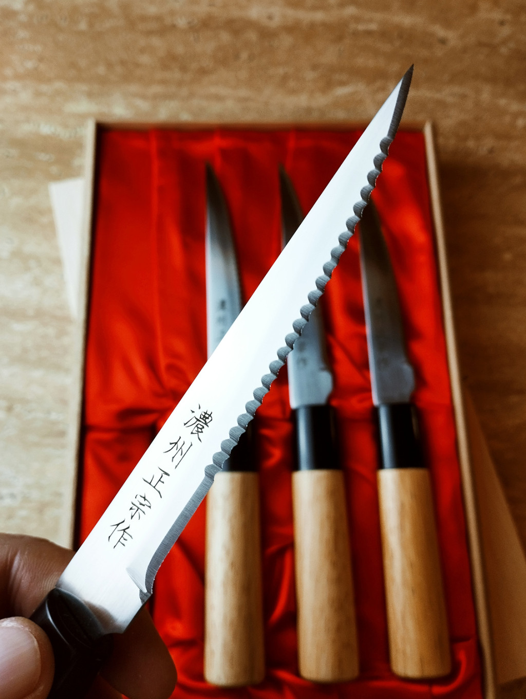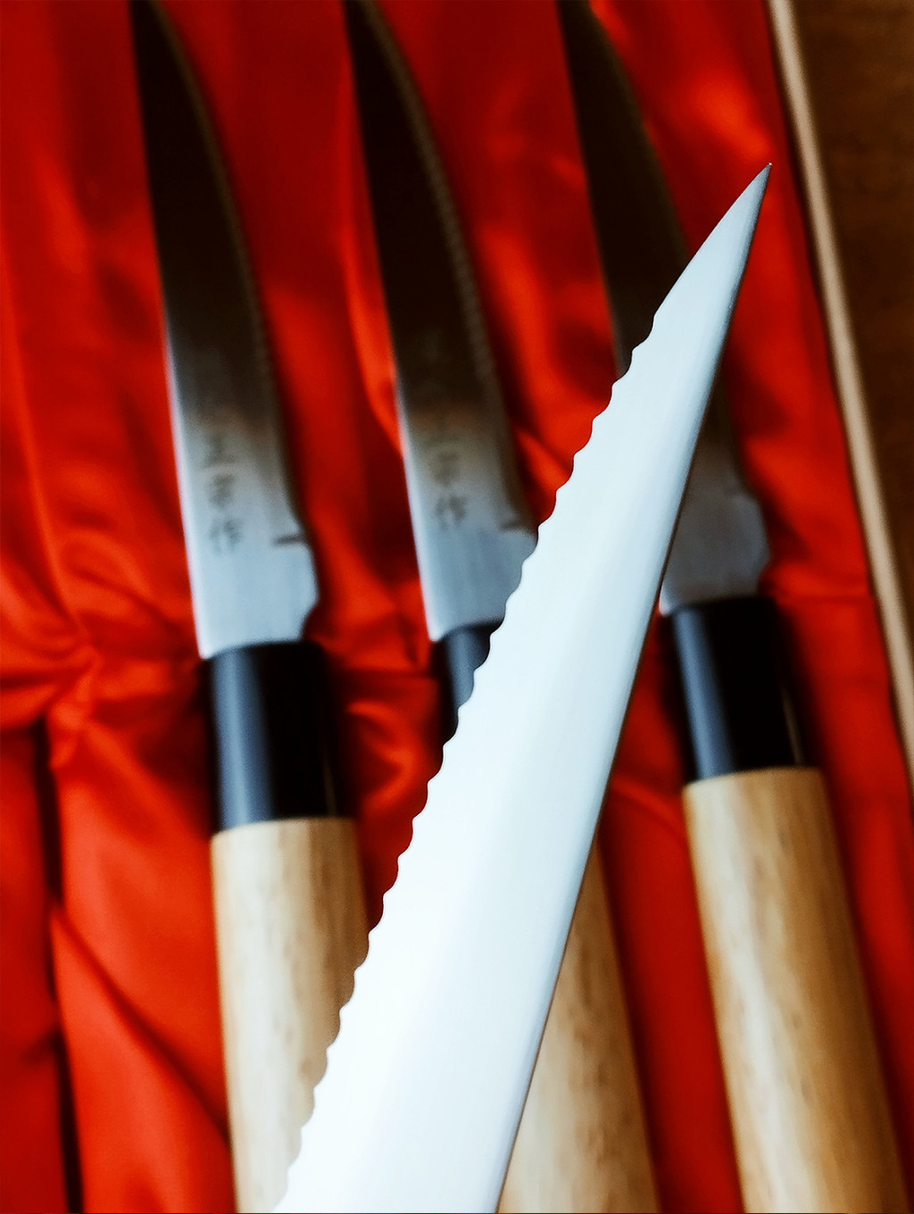 The Satake Japanese steak knife set creates a bridge between professional cutting tools and elegant dining knives.